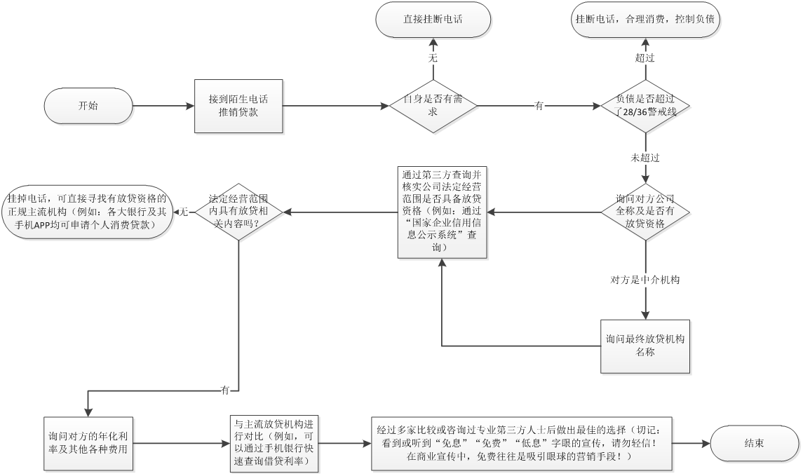 针对目前日益频繁、触手可及的电话推销及颇具创意的网络贷款推销,金融消费者尤其是消费需求旺盛的年轻人在参与借贷前要逐一核对以下十条注意事项: