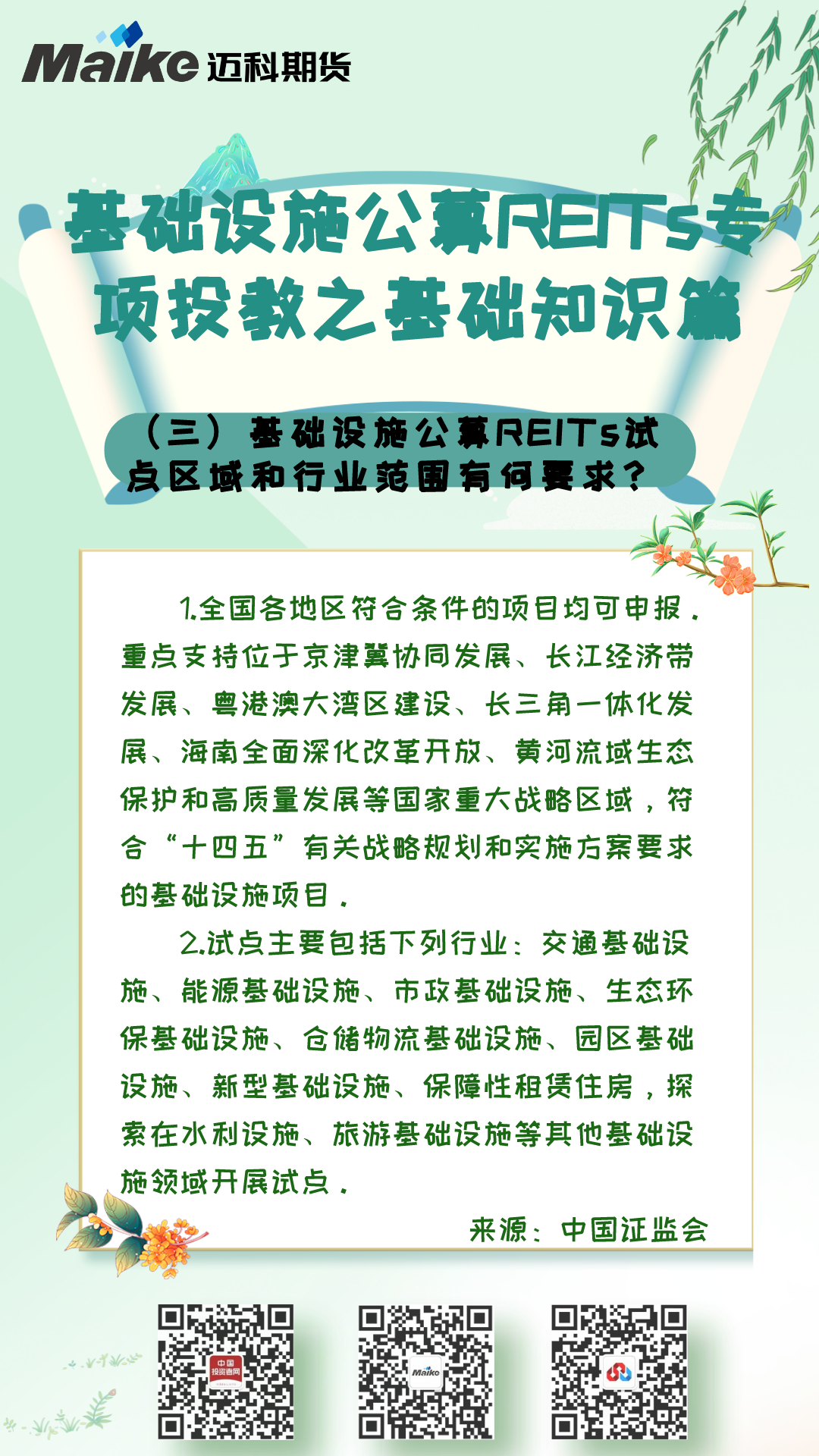 【基础设施公募REITs投教】基础知识篇(三)基础设施公募REITs试点区域和行业范围有何要求?