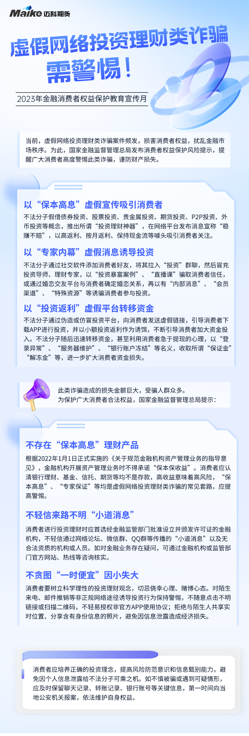 【金融消费者权益保护教育宣传月】虚假网络投资理财类诈骗需警惕!