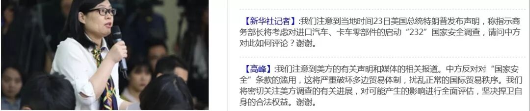 根据商务部官网信息,在24日的例行新闻发布会上,针对特朗普指示考虑对进口汽车启动调查一事,商务部新闻发言人高峰对新华社记者表示: