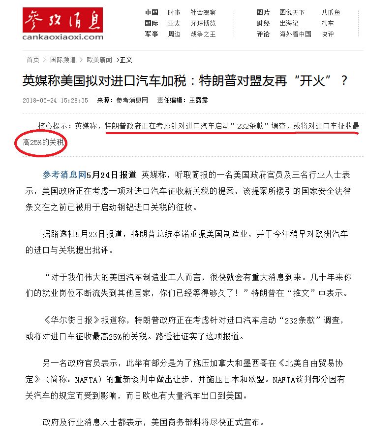 特朗普已利用232条例对全球进口钢铝征收关税,现在又在考虑根据同样的法规对进口汽车展开调查。