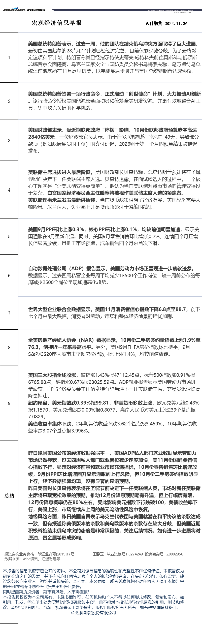 迈科期货11月26日宏观经济信息早报