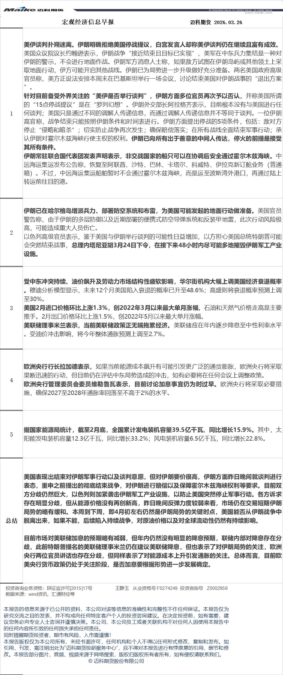 迈科期货3月26日宏观经济信息早报